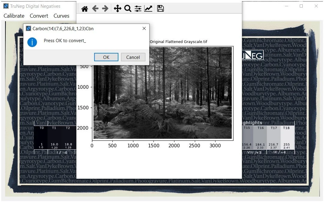 To counteract this, TruNeg has tested and developed several profiles that can be downloaded free of charge from the website. Currently, these include Argyrotype, Carbon(A, Dichromate)/Gum Bichromate, Classic Cyanotype, Salt and Van Dyke Brown.